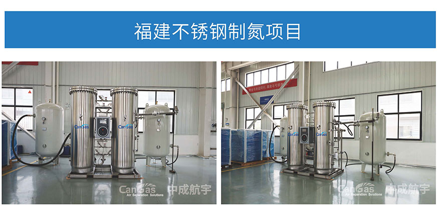 該公司為食品行業(yè),對制氮設(shè)備要求極為嚴苛,中成航宇工程師經(jīng)過現(xiàn)場勘察和充分交流溝通,為其提供了一套不銹鋼材質(zhì)制氮機。整套制氮機從吸附塔、過濾器、緩沖罐等均采用304不銹鋼材質(zhì),確保設(shè)備長期穩(wěn)定運行,滿足行業(yè)的高標準要求。