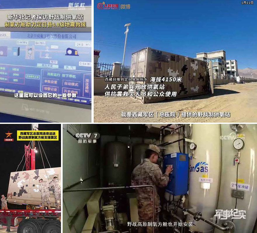 1月7日9時,在西藏日喀則市定日縣發(fā)生6.8級地震;地震給定日縣造成了巨大的人員傷亡和財(cái)產(chǎn)損失。西藏軍區(qū)總醫(yī)院快速響應(yīng),連夜運(yùn)送了野戰(zhàn)高原制氧方艙赴災(zāi)區(qū),以應(yīng)對可能發(fā)生的高原病和其他緊急醫(yī)療情況。其中中成航宇的CanGas高原制氧方艙在此次援助中,快速使用,提供持續(xù)穩(wěn)定的制氧、供氧,發(fā)揮了重要作用。為缺氧環(huán)境快速補(bǔ)氧,緩解高原反應(yīng);為緊急救治,增加血氧飽和度,提高治療效果,保障人民群眾和子弟兵的生命安全,提供了有力保障,受到廣泛好評。