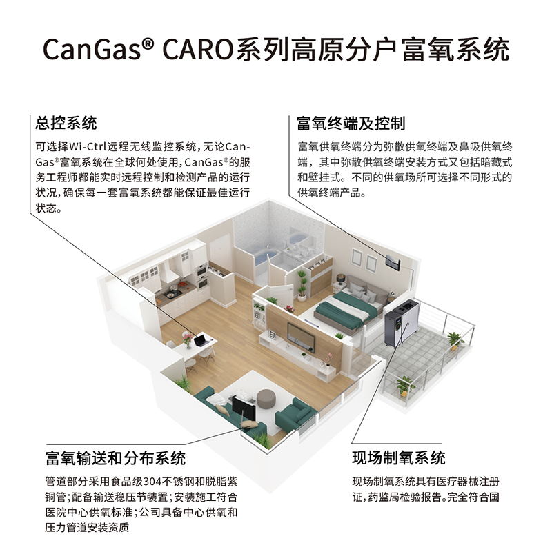 CARO分戶富氧系統(tǒng)的室內主機體積小,噪音低,運行平穩(wěn),免維護;可按需開停,輕松掌控,經濟高效;可提供多種擴展選項